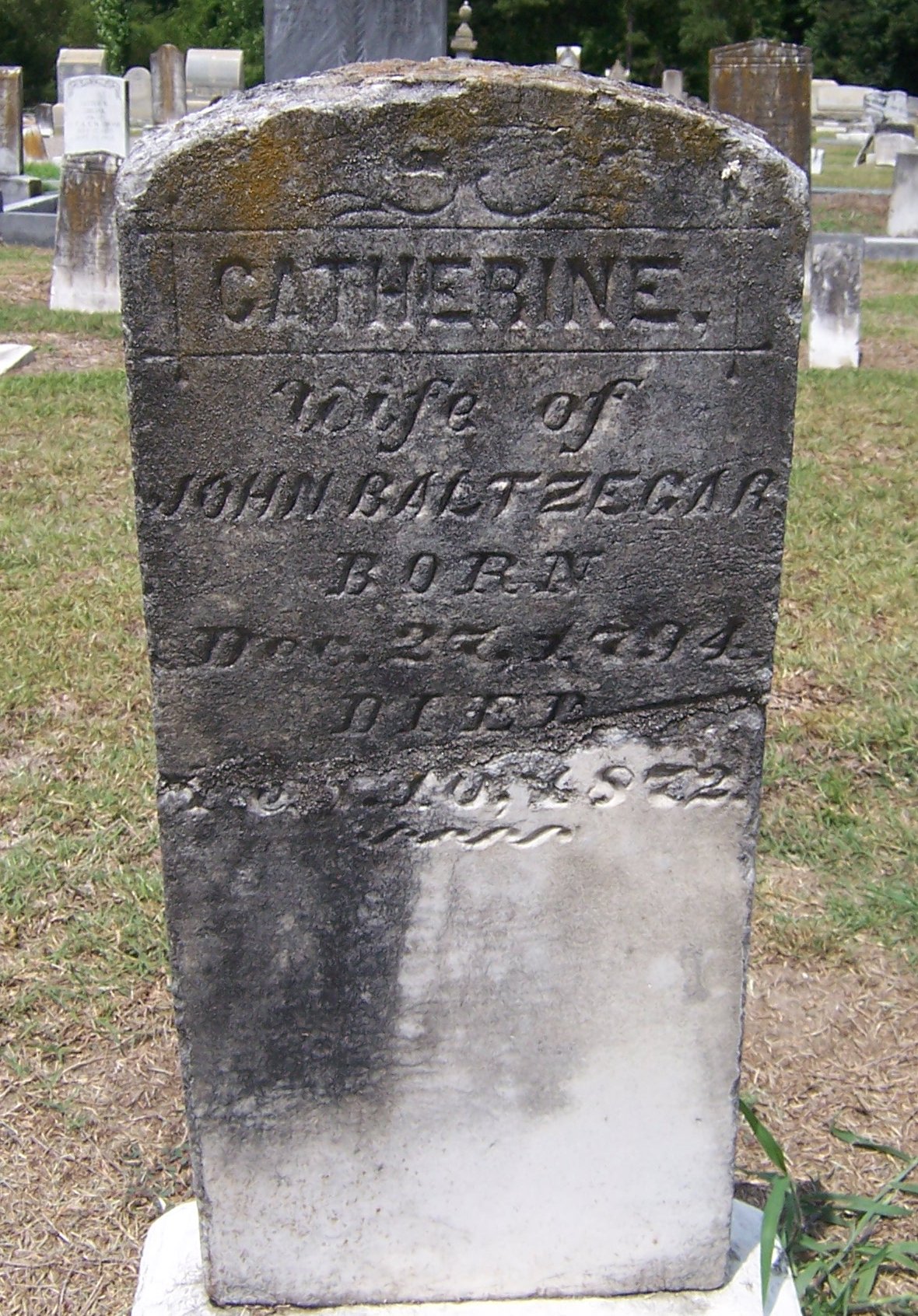 JOHN BALTZEGAR BORN Dec. 27, 1794 DIED Feb. 10, 1872