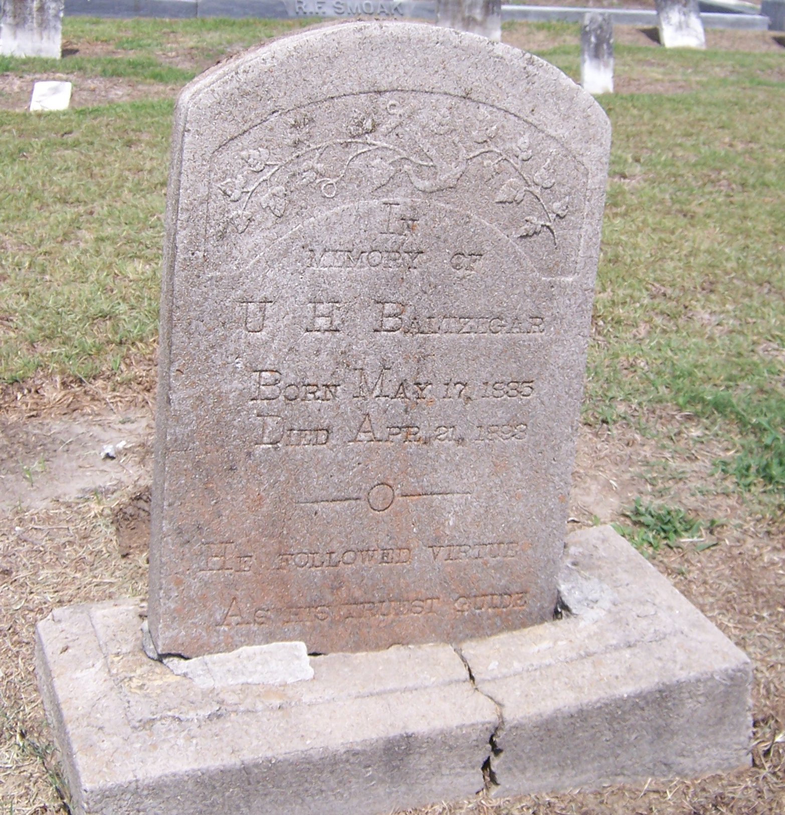 IN MEMORY OF U. H. BALTZEGAR BORN MAY 17, 1835 DIED APR. 21, 1893